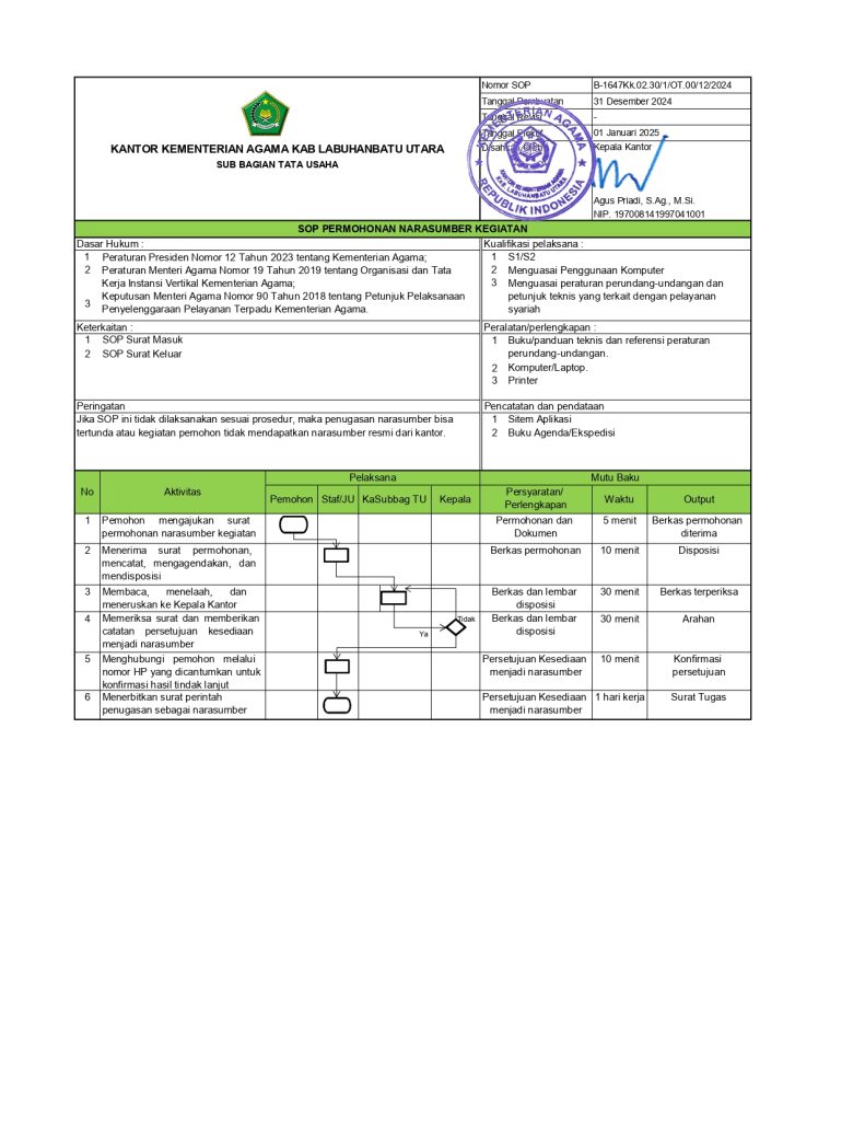 2 Hari (1 Hari Disposisi Surat, 1 Hari menyiapkan surat tugas menjadi narasumber di kegiatan yang diajukan)